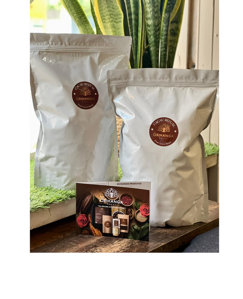 As Pastilhas o gotas de Cacau Cerimonial 100% Puro da Ôrihanga são produzidas artesanalmente a partir de grãos de cacau selecionados em São Tomé e Príncipe, na plantação Diogo Vaz. Com formato prático e doseado, oferecem a intensidade e a pureza do cacau em pequenas porções fáceis de utilizar, preservando todo o seu sabor profundo e caráter ancestral.